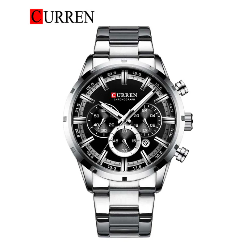 La montre Curren 8355 est une montre à quartz pour homme, dotée d’un boîtier en acier et un bracelet en acier avec fermoir de sécurité , d’une fonction chronographe et d’un affichage de la date.